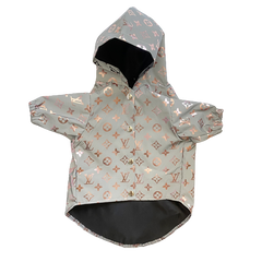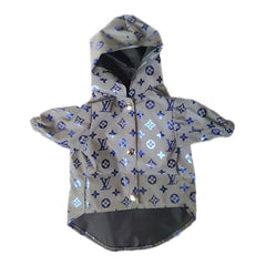 Dress your dog in style and safety with the Chewy V Reflective Windbreaker. Taking cues from the famous Louis Vuitton style, this windbreaker features a reflective pattern that shines brilliantly under a flash for night-time visibility. Crafted from lightweight and durable 100% polyester, it promises comfort and ease with its simple button-up closure. Available in five versatile sizes to ensure the perfect fit for your furry friend.