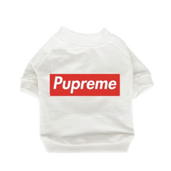 Wrap your pup in style with the Pupreme Sleek Streetwear Sweater. Inspired by Supreme, this sweater features soft, breathable 100% cotton, ensuring your dog stays comfortable while looking sharp. Its stretchy design accommodates a range of dog sizes and movements, from playful puppies to serene seniors. Plus, it's easy to clean and maintain, ideal for everyday wear.
