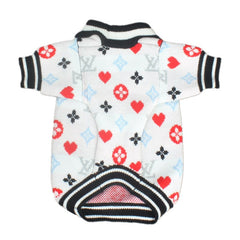 The Chewy V Love Sweater is the ultimate expression of stylish doggy fashion. Inspired by the timeless elegance of Louis Vuitton, this sweater sports a signature pattern that exudes style without sacrificing comfort. Perfect for brisk walks and patio paw-rties, it's a must-have for the fashion-forward pup.