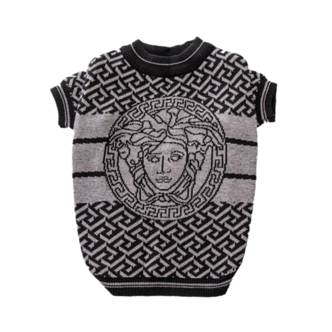 Introduce a touch of luxury to your dog's wardrobe with this Pawsace Snazzy Pup Sweater, inspired by the iconic Versace brand! Made from 100% soft cotton, it's designed to provide both comfort and style for your small to medium-sized dogs. The vibrant patterns and classic emblem embody a timeless fashion statement that's sure to turn heads at the park. Machine wash friendly, it combines convenience with elegance.